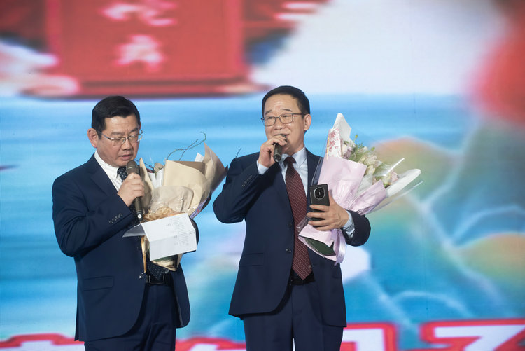 相田董事長、徐總、櫻井常務(wù)合唱