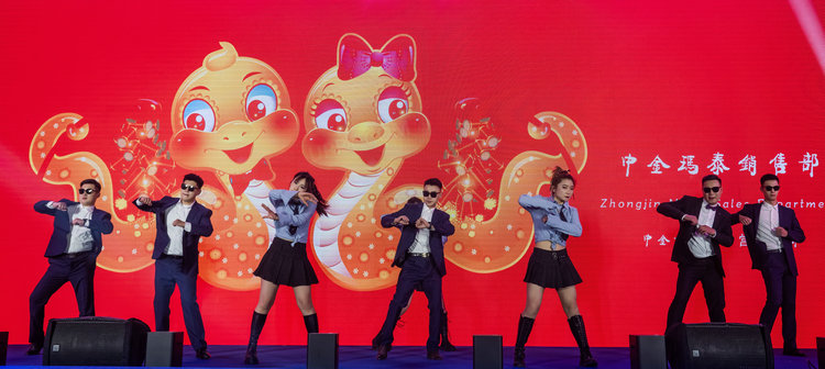 表彰過后,精彩紛呈的年會節(jié)目表演將現(xiàn)場氣氛推向高潮。員工們自編自演的歌舞、情景劇等節(jié)目,內(nèi)容豐富,形式多樣,充分展現(xiàn)了中金人多才多藝、朝氣蓬勃、昂揚向上的精神風(fēng)貌。穿插于節(jié)目之間的一輪輪的幸運抽獎環(huán)節(jié),更是將年會氣氛推向高潮,不斷抽出的豐厚獎品也為大家?guī)砹艘馔獾捏@喜和歡樂。
